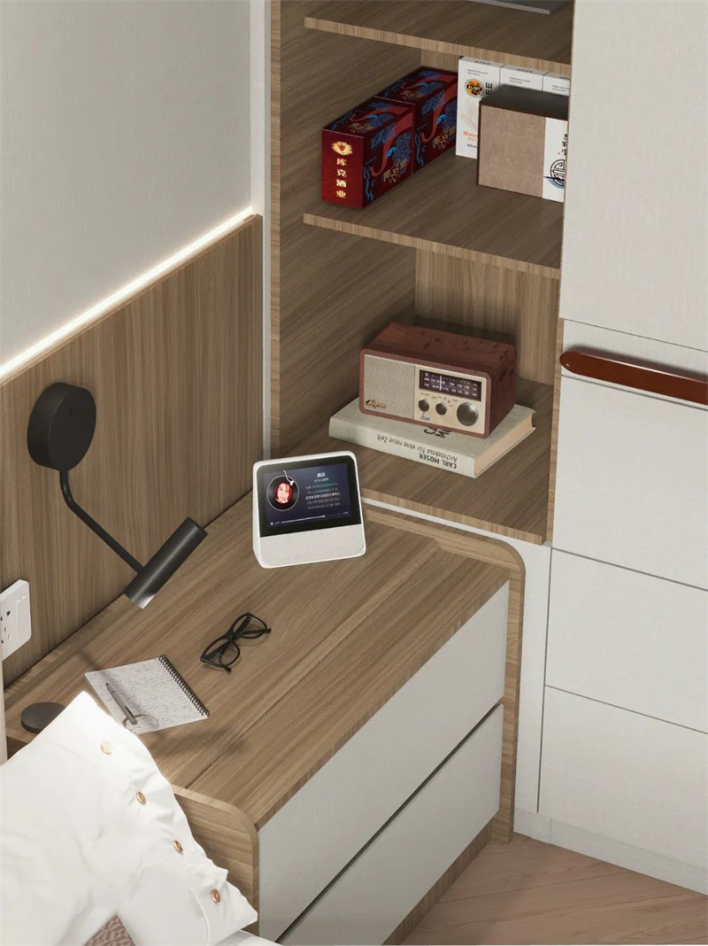 ??即使年輕人可能不選擇床頭柜,父母房間里一定要安排上,放置書、老花鏡、保溫杯等日常必需品~