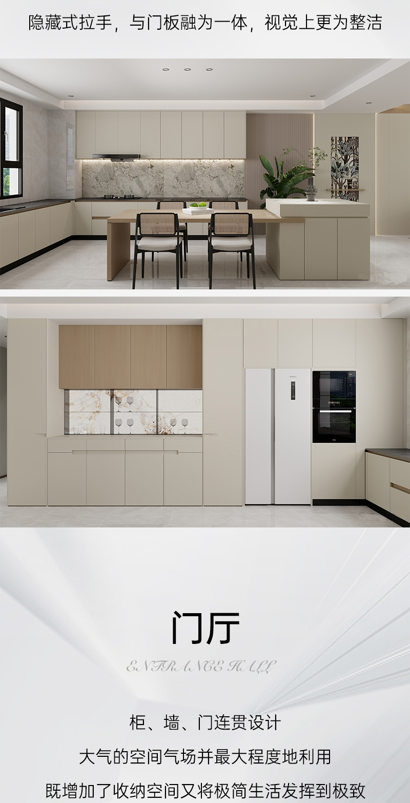 一體化銑型拉手,使空間線條更加柔和,溫馨氛圍更濃;