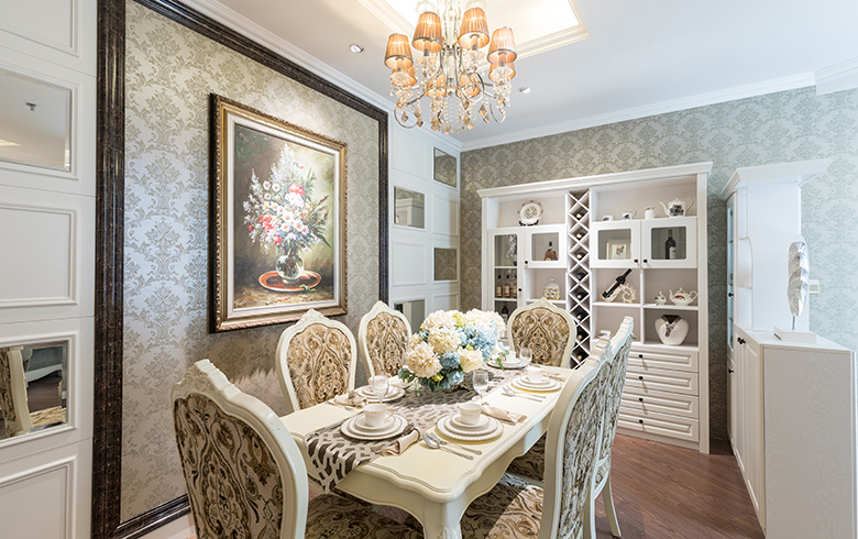 源于歐洲英倫白金漢宮的浪漫情懷,融合初戀的純凈與美好,用極致簡單的設計理念貫穿整個客廳。純色的家具、大氣婉約的吸塑造型,配以素雅的軟裝和歐式經典紋飾的沙發及茶幾,點綴帶有抽象印花圖案的抱枕,營造浪漫、靜雅的家居空間。