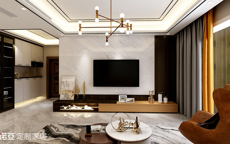 高級黑與高級灰做為表現(xiàn),黑白的對比鮮明,總給空間一種大大方方的利落感覺。選用帶有高級感愛馬仕橙,黑色及碳灰色,來演繹一種“低調(diào)的奢華”,令空間質(zhì)感更為飽滿。