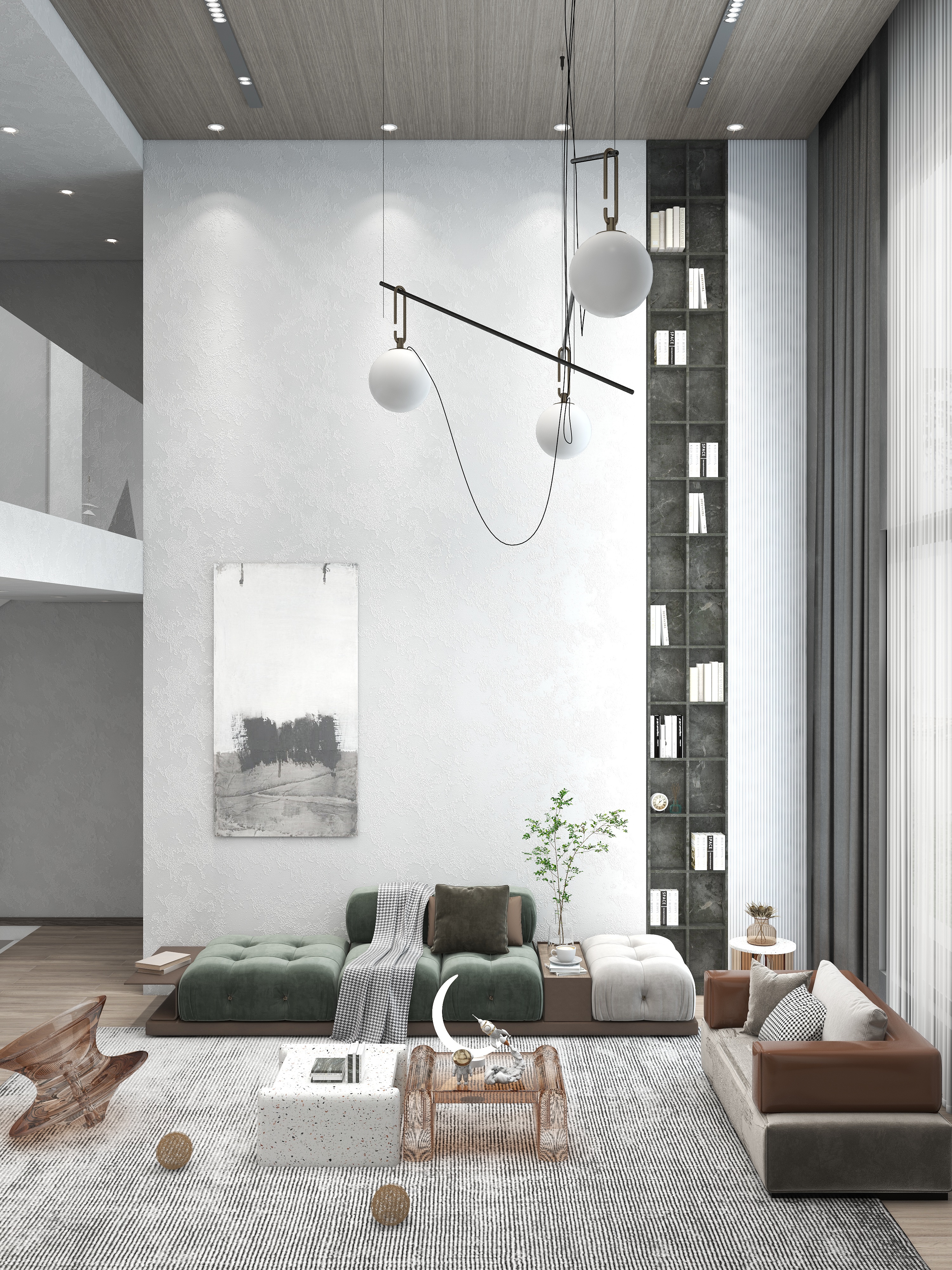 本案為碧桂園?長興世家510平米別墅的詫寂風格案例。侘寂之美,是一種東方禪意的心境狀態。強調事物質樸的內在,并且能夠精力時間的考驗,發自本質的美。其中的斑駁、褪色和黯淡是極具詫寂風格的代表,詮釋出樸素、安靜的事物,其素雅、自然、粗野之特性。主張在平淡的生活空間中窺見質樸極簡之美,強調事物的內在聯系,是一種簡約卻極致低奢的美,還原了對生活最純粹的追求。