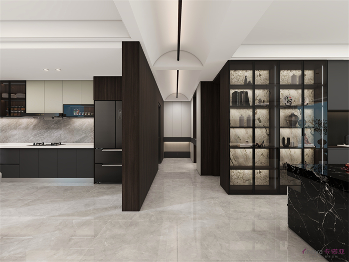 設計方案是一個意式簡約風的大平層,門板材料主要是以水性漆為主,客廳空間因為改造后跨度比較大,光線比較好,所以我們采用部分深色的墻面來搭配淺灰色的地板,讓空間大氣不失沉穩。設計理念:設計源于生活,生活因設計而改變,讓設計物有所值,讓細節締造完美!整家視界 全案生活|第六屆卡諾亞整家設計精英聯賽