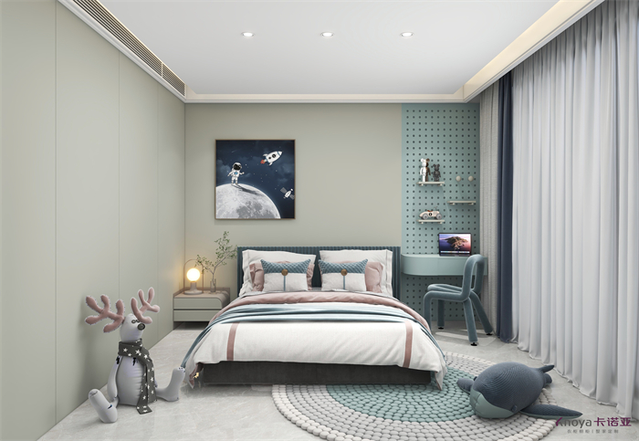 本案設(shè)計(jì)圍繞客戶的需求,打造出一個簡約優(yōu)雅的空間。同時,圍繞小主人公成長加入趣味,運(yùn)動等主題,拆除多余墻體,合理規(guī)劃空間,人體動態(tài)路線便捷。空間多元化收納,功能分區(qū)明顯。
