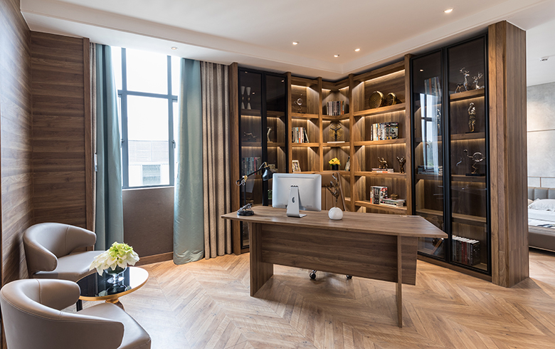 隔音這個因素是非常重要的,因為一個安靜的環境是閱讀和工作的前提,所以書房設計的時候最好選擇隔音效果比較好的裝修材料。隔音效果好的地面材料有軟木地板,不僅可以減少噪音,腳感也很舒適,也可以選擇鋪設地毯,效果也很不錯;墻面可以用吸音板或者軟包裝飾;窗簾建議選擇厚重一些的材料,也可以直接使用隔音窗簾來降噪。
