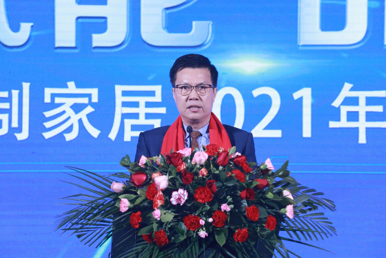 圖:卡諾亞定制家居研究院院長陳勇剛先生做“2021年新品推介”演講