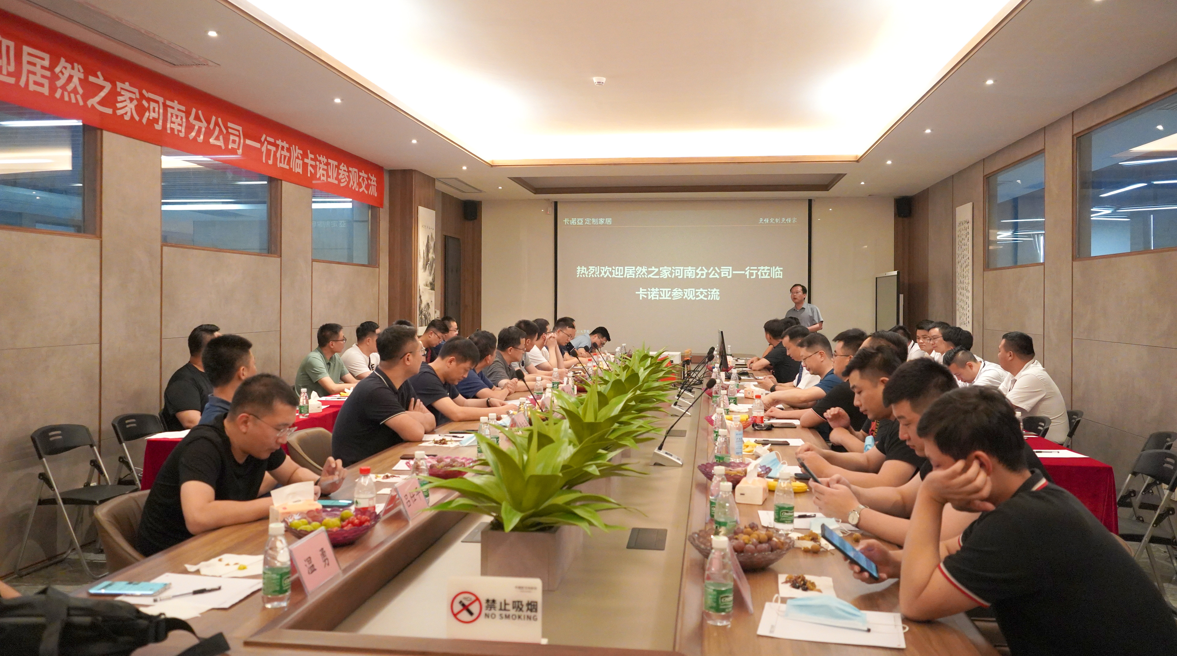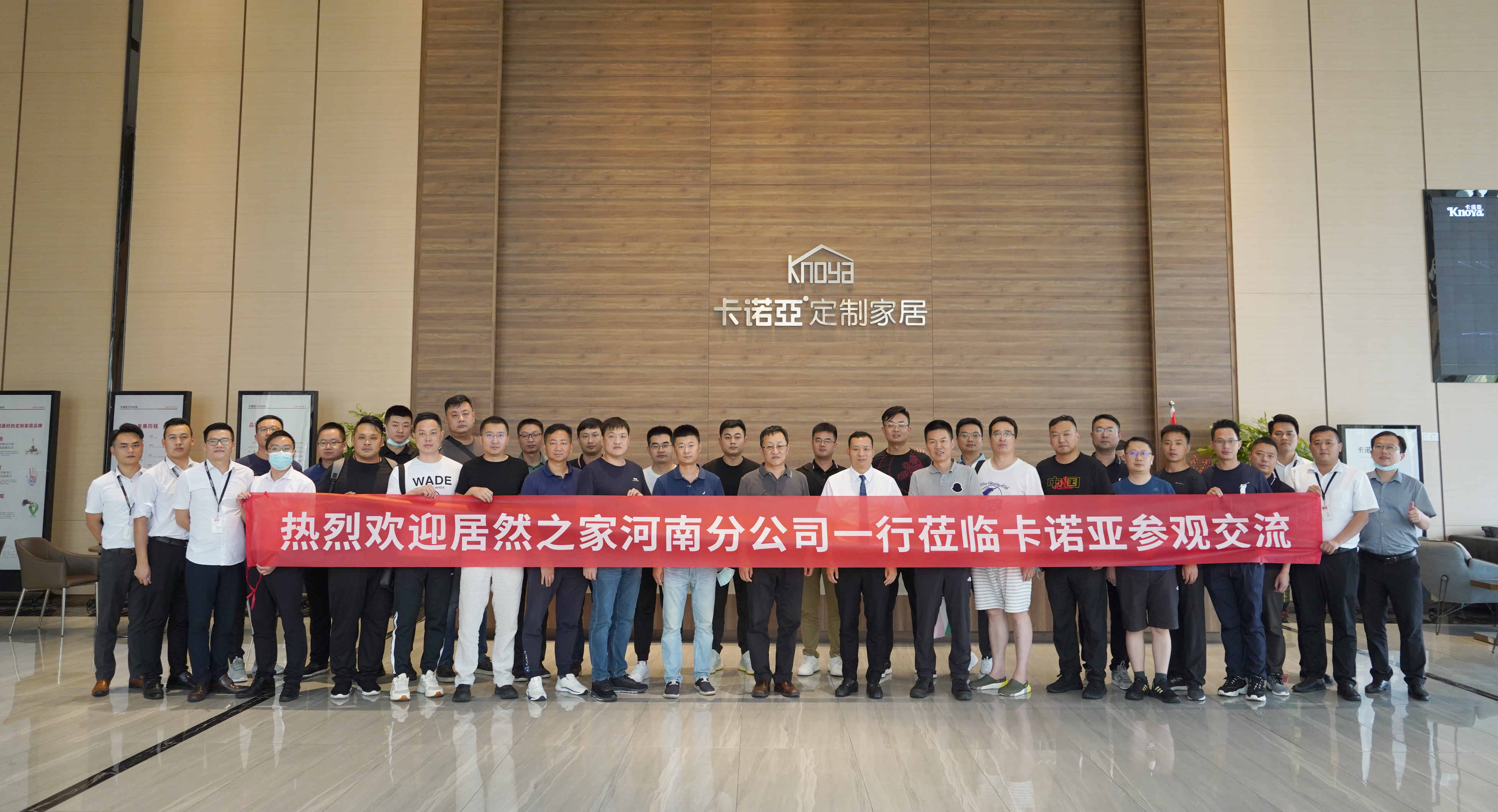 7月21日,居然之家河南分公司總經(jīng)理張健先生攜同河南各分店總經(jīng)理一行30多人,蒞臨卡諾亞定制家居清遠(yuǎn)工業(yè)4.0制造基地參觀考察交流。卡諾亞定制家居營(yíng)銷副總經(jīng)理李偉明等公司高層全程陪同,雙方就布局河南市場(chǎng)的合作事宜進(jìn)行深入的探討。